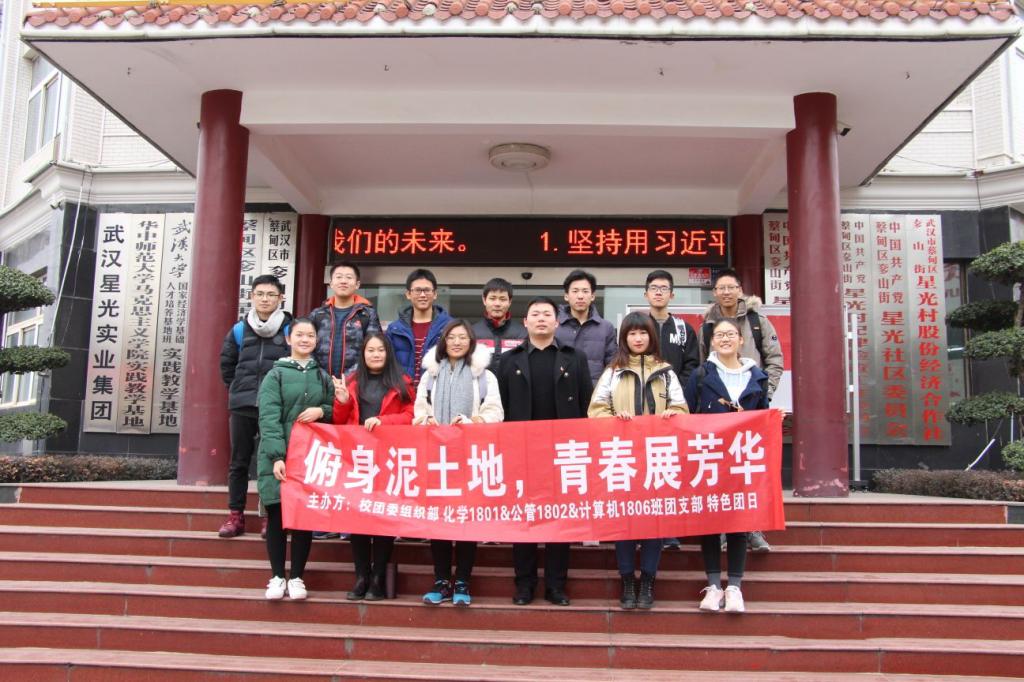 本学年的特色团日活动以“时代新征程,青年新使命”为大主题,为了了解并宣扬那些响应国家号召、扎根基层投身祖国建设的大学生村官和选调生动人的故事,计算机1806、公管1802和化学1801班团支部开展了“俯身泥土地,青春展芳华”特团活动。