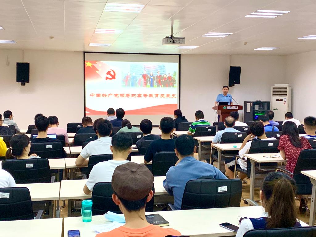 5月31日晚,在南一楼西203教室,学院党委书记吴涛以“中国共产党领导的高等教育发展史”为题,为师生讲授专题党课。学校党史学习教育第四督导组刘金纺到会指导。