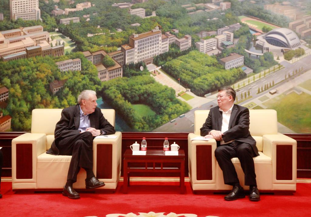 12月13日上午,在梧桐语明仁楼思远厅,尤政校长会见了我校名誉教授,美国科学院、工程院、艺术与科学院院士,中国科学院外籍院士,图灵奖获得者约翰·爱德华·霍普克洛夫特(John Edward Hopcroft)。副校长陈建国参加会见。
