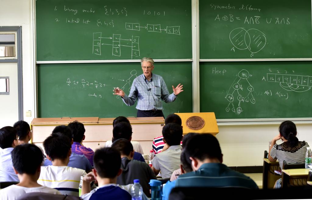 约翰•霍普克罗夫特教授于2013年受聘为华中科技大学名誉教授,2014年支持云博网页版组建John Hopcroft实验室(John Hopcroft Lab),在科学研究、人才培养等方面展开实质性合作,合作方向包括深度学习、社交网络等,同时参与本科生《算法设计与分析》、《离散数学》、《机器学习》,博士生《求解NP难度问题的现代方法》等课程教学,帮助提升我院教学质量和建设国际化课程。