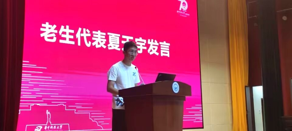 往届学生代表夏天宇用自己的经历激励同学们树立崇高理想,勤于学习,敢于尝试,乐于实践,勇于奉献,谨记“明德、厚学、求实、创新”的校训,秉承学院文化精神,“只争朝夕,不负时代”。