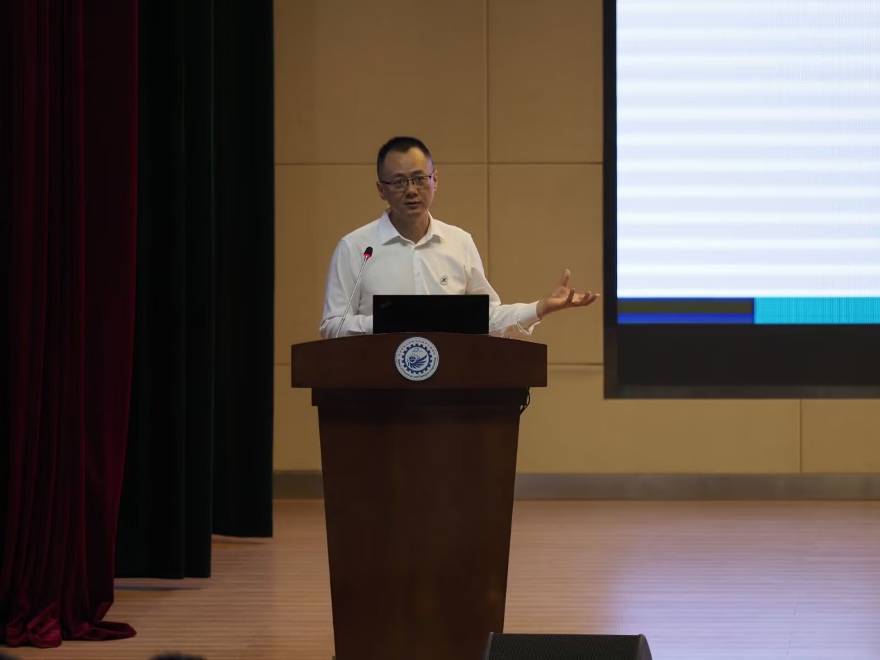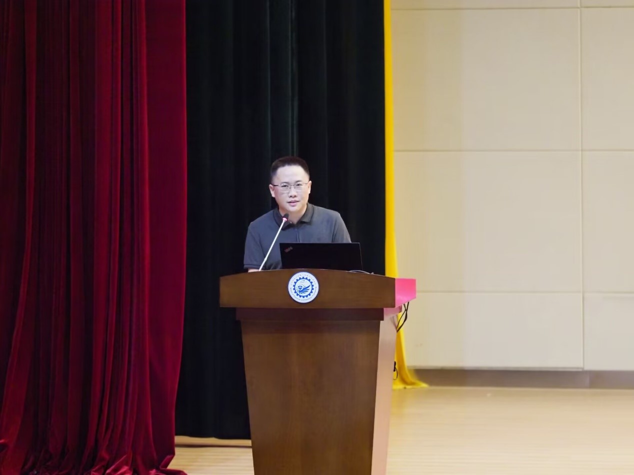 院长冯丹以校园风采为引,向同学们展示了学校的文化底蕴、学习氛围和生活环境,并详细介绍了计算机学科的研究领域、发展目标、学院的基本情况、历史沿革等。