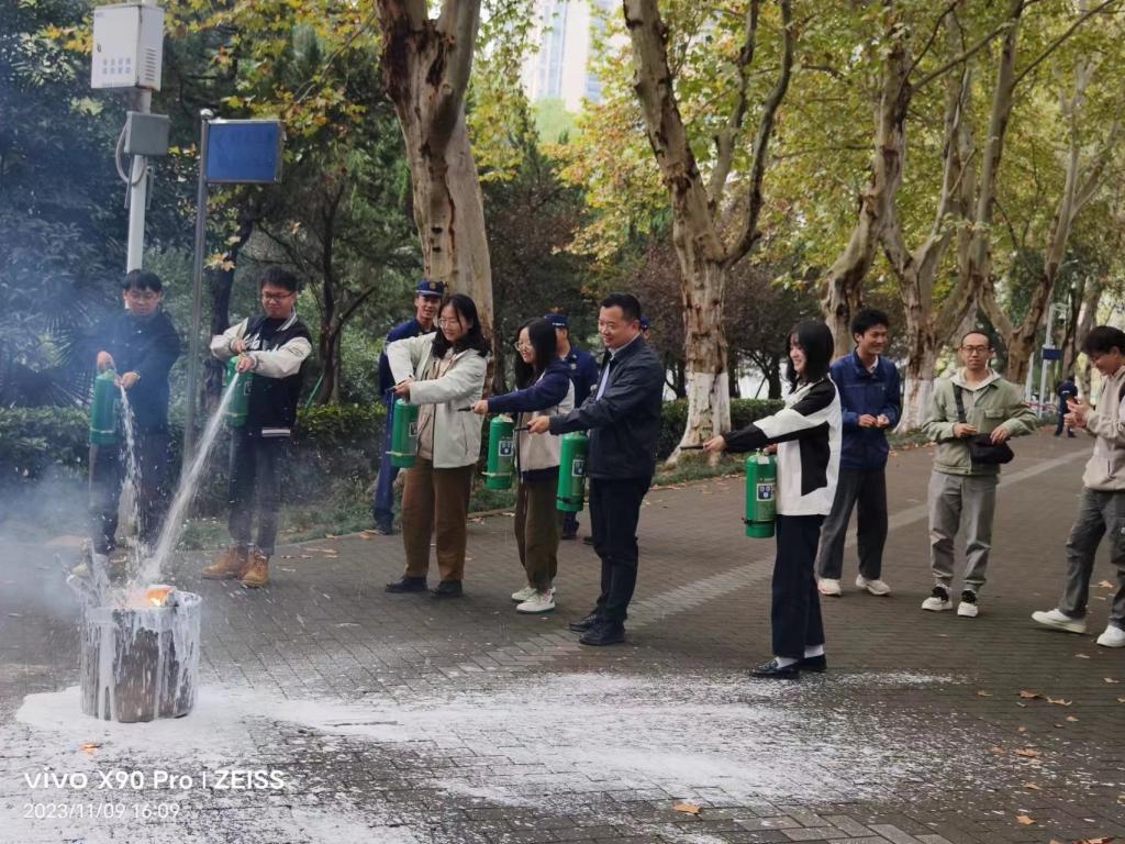 专题讲座结束后,参加学习的师生在南一楼东门广场进行了消防安全逃生演练。