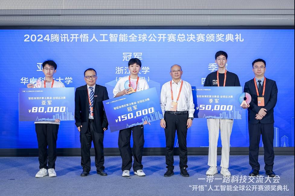 2025年6月12日,2024腾讯开悟人工智能全球公开赛颁奖典礼作为第二届“一带一路”科技交流大会的重要特色活动在成都隆重举行。该赛事由四川省教育厅、四川省科技厅、重庆市教育委员会、重庆市科技局主办,四川大学、成都市委人才办、腾讯公司联合承办,成都高新区管委会、成都市人才发展促进中心支持,依托腾讯开悟AI开放研究平台顺利开展。赛事吸引了来自全球388所高校、2038支战队、5000余名优秀选手参赛。