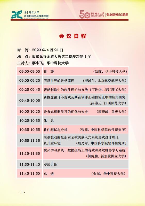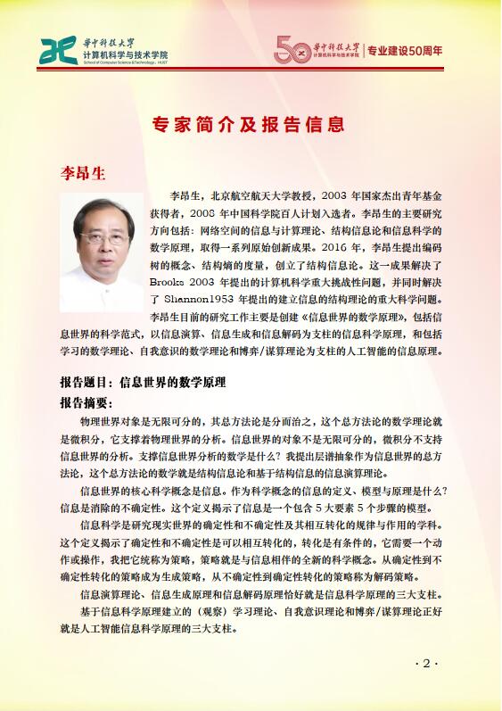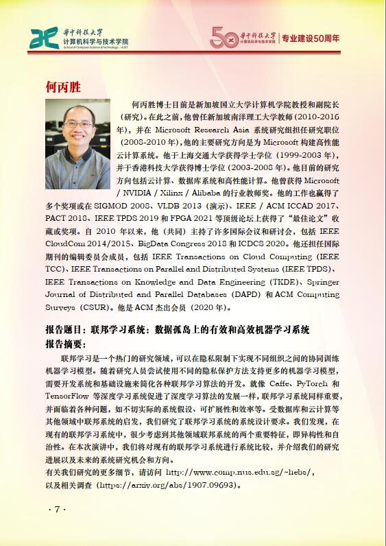 华中科技大学计算机科学与技术专业建设50周年学术讲座