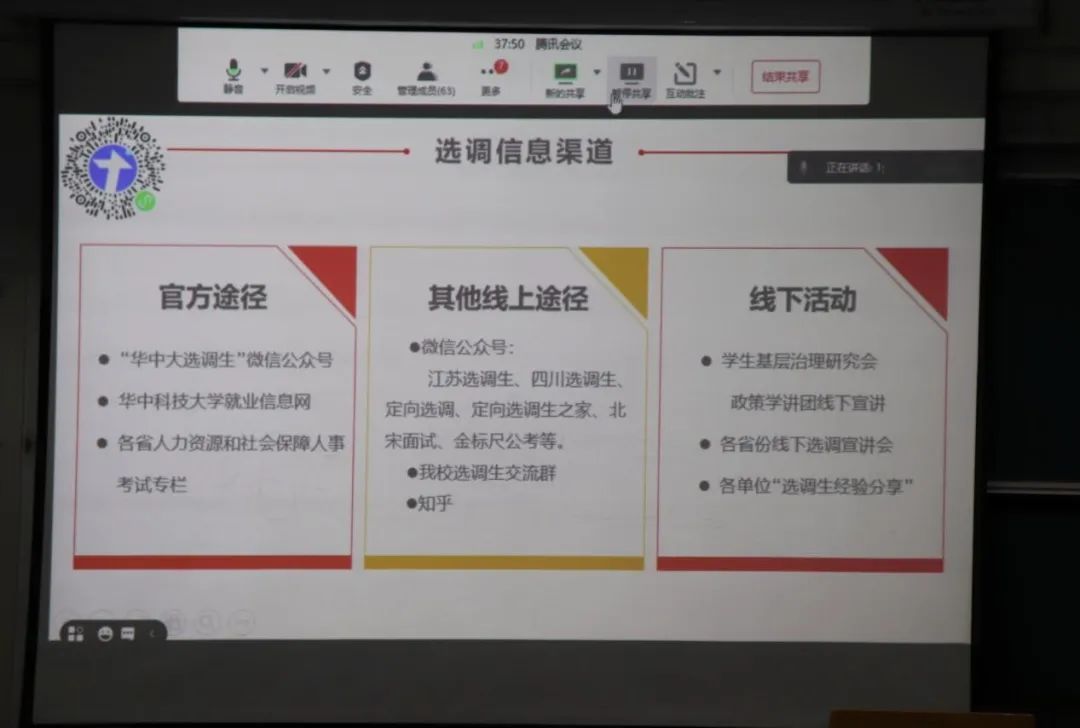 华中科技大学电气学院2021届本科毕业生邓添在线上就央选、江苏名校优生以及广西选调的备考经验向同学们进行了分享。