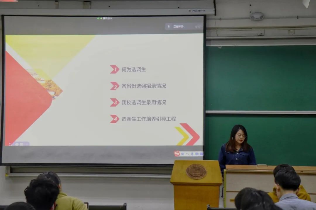 近年来,学校对于选调生工作的重视不断加深。宁淼介绍了我校选调生工作培养引导工程,鼓励同学们积极参与相关活动,切实了解基层工作环境及基层发展动态。
