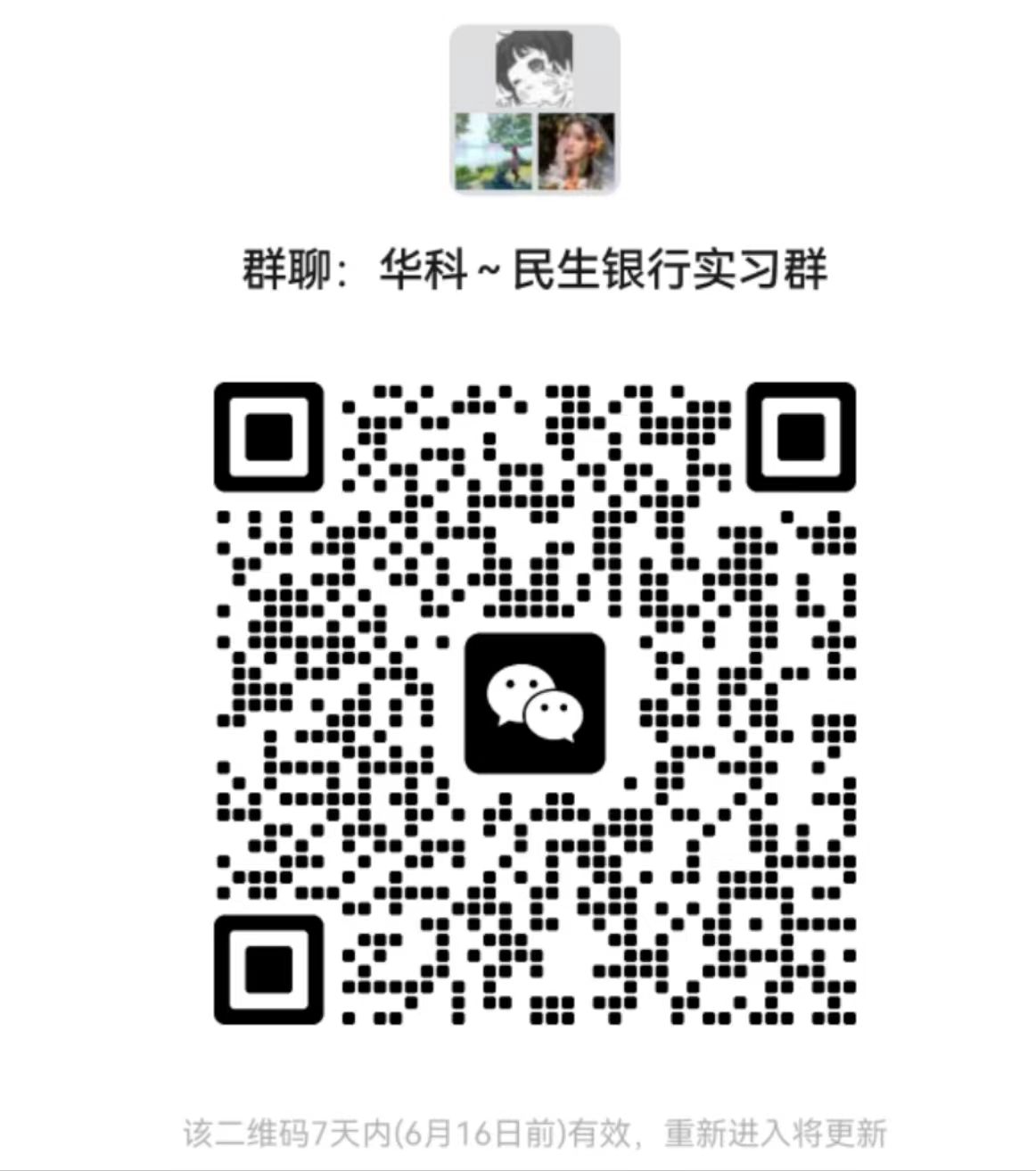 有同学想实习或者将来想加入民生银行,都可以加入此群,将结合大家的实习意愿安排实习岗位。