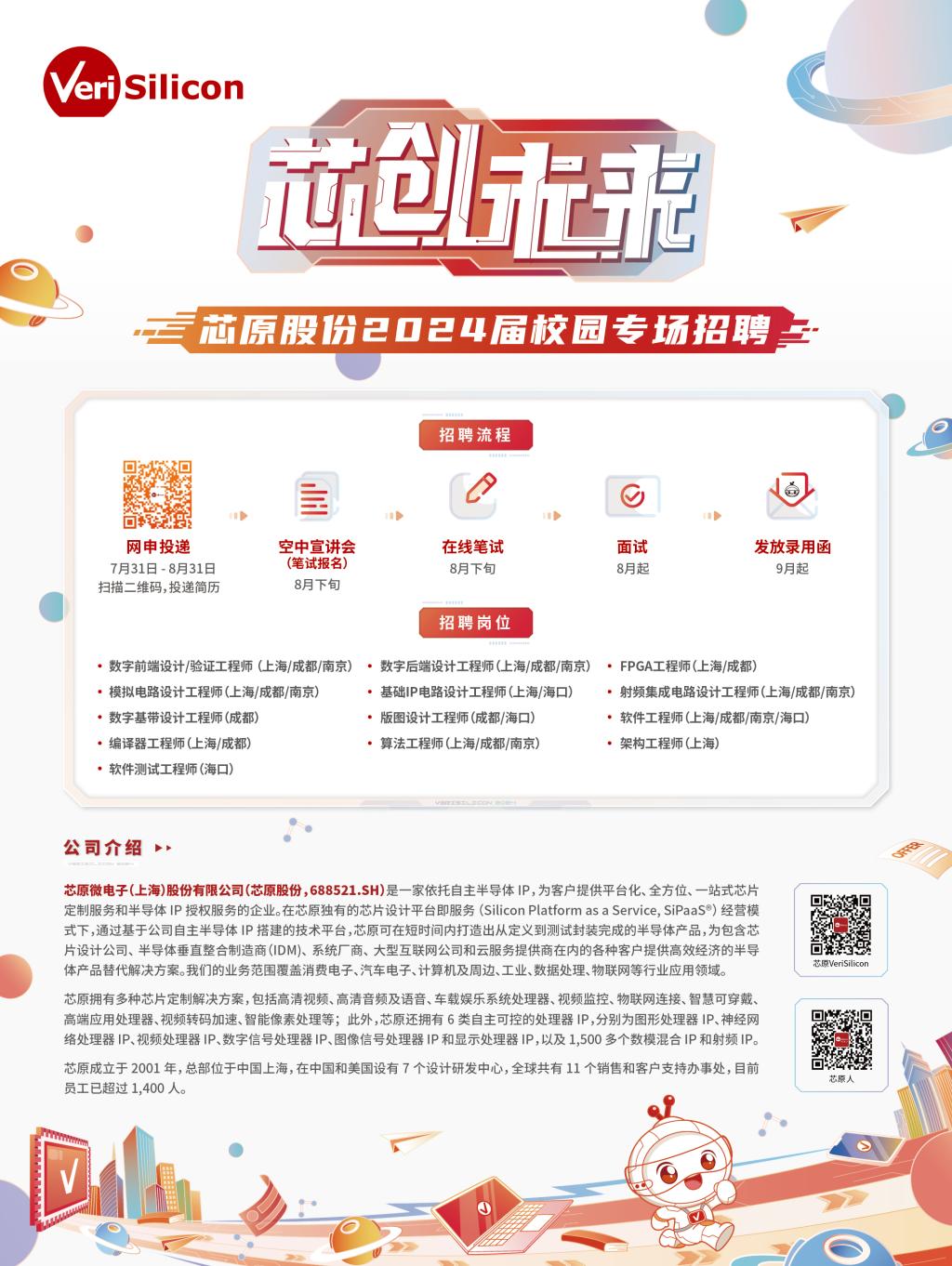 欢迎进入芯原股份2024届校园招聘网站投递简历并查看校招流程、校招岗位、校招Q&A、企业介绍等信息:http://campus.51job.com/VeriSilicon2024