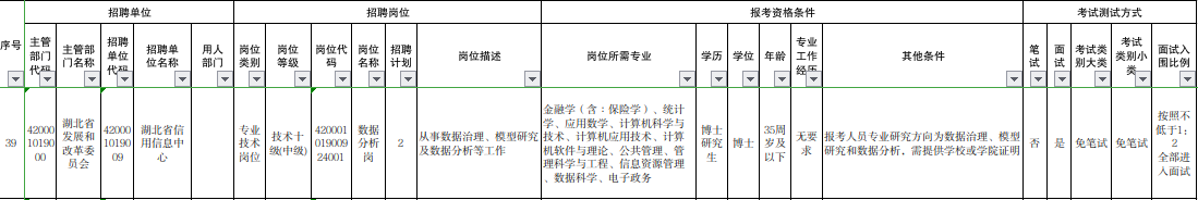 湖北省信用信息中心是省发展和改革委员会下设公益一类事业单位。2024年面向社会公开招聘2名事业编制工作人员,从事数据治理、模型研究及数据分析等相关工作。