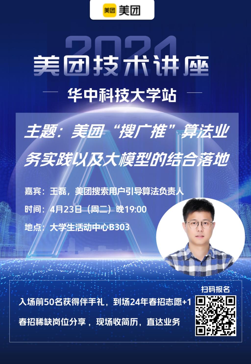 讲座主题:美团"搜广推"算法业务实践以及大模型的结合落地