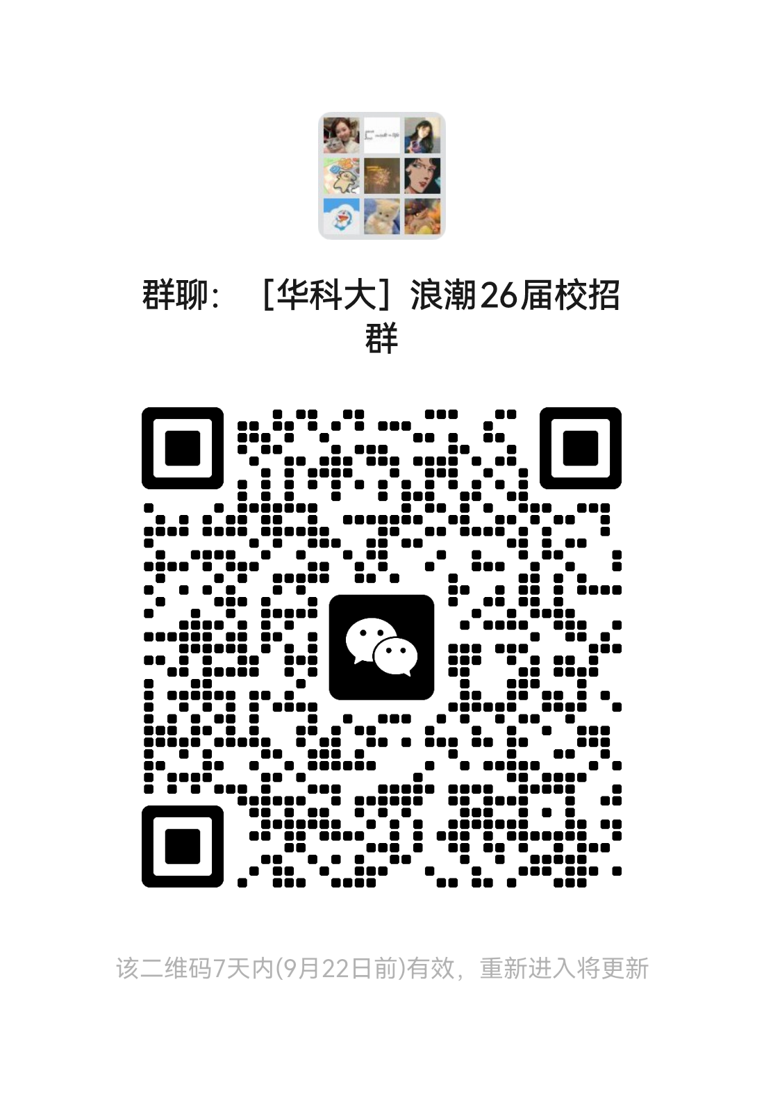 扫码加入浪潮华科校招群,HR在线答疑,第一时间掌握招聘动态!