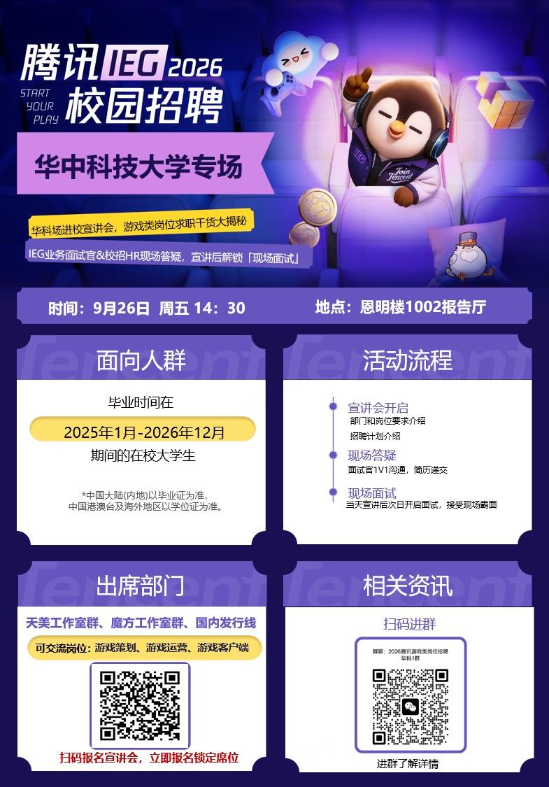 🎮腾讯IEG 2026校园招聘 | 宣讲会 · 华中科技大学站🎮